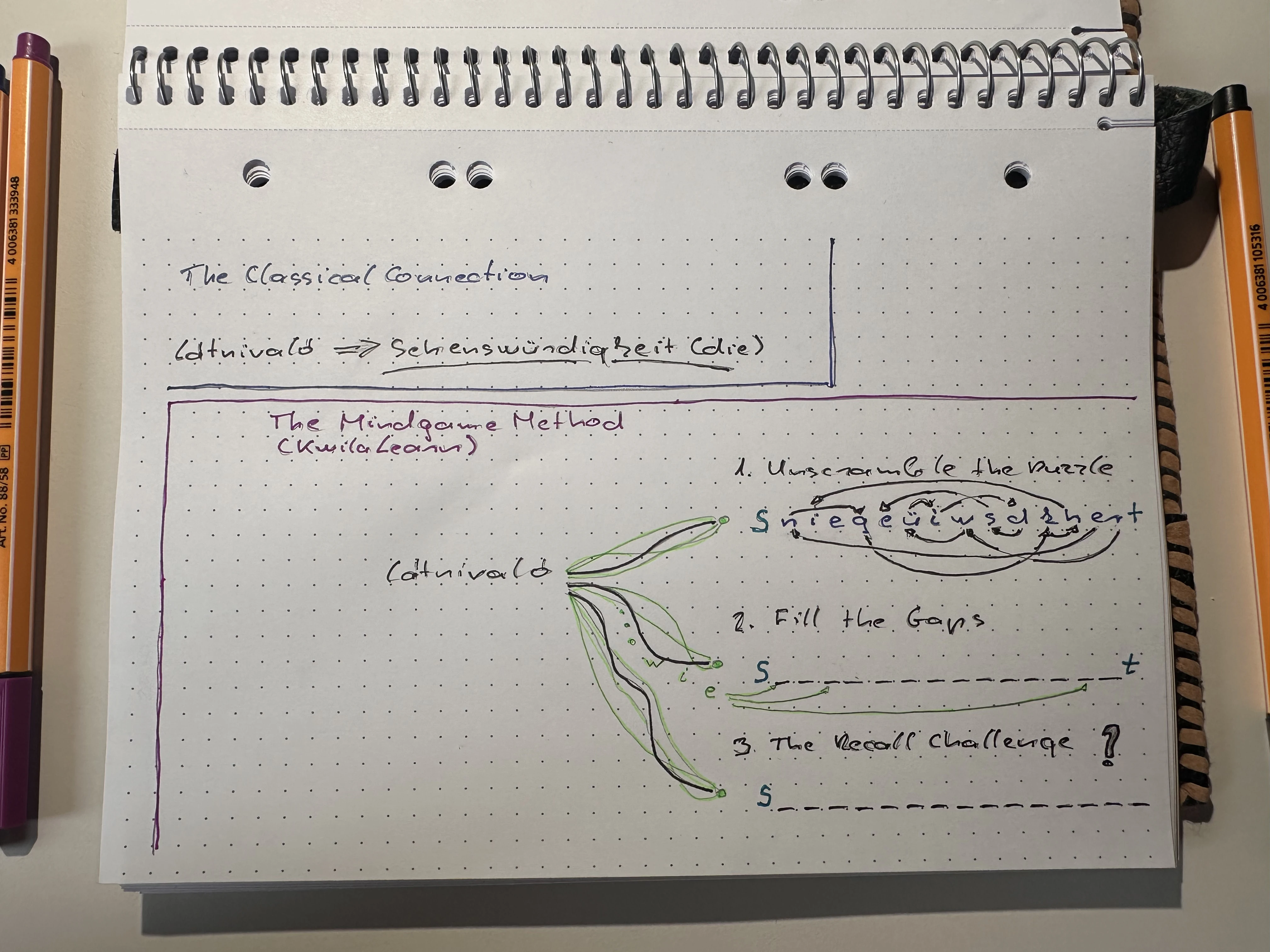 You aren’t just memorizing; you are playing. It isn't just about connecting the Hungarian ”látnivaló” to the German ”Sehenswürdigkeit” (die). Your brain is forced to recreate that connection in three distinct, increasingly difficult ways.